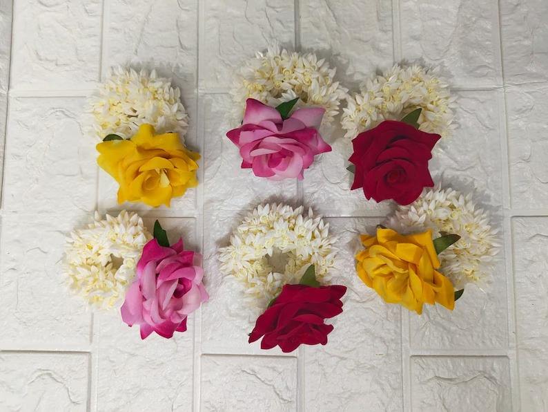 Haldi Wedding Jasmine Rose Gajra Floral Hair & Wrist Accessories for Mehndi Sangeet Henna Night Indian Wedding Jewelry Bracelet