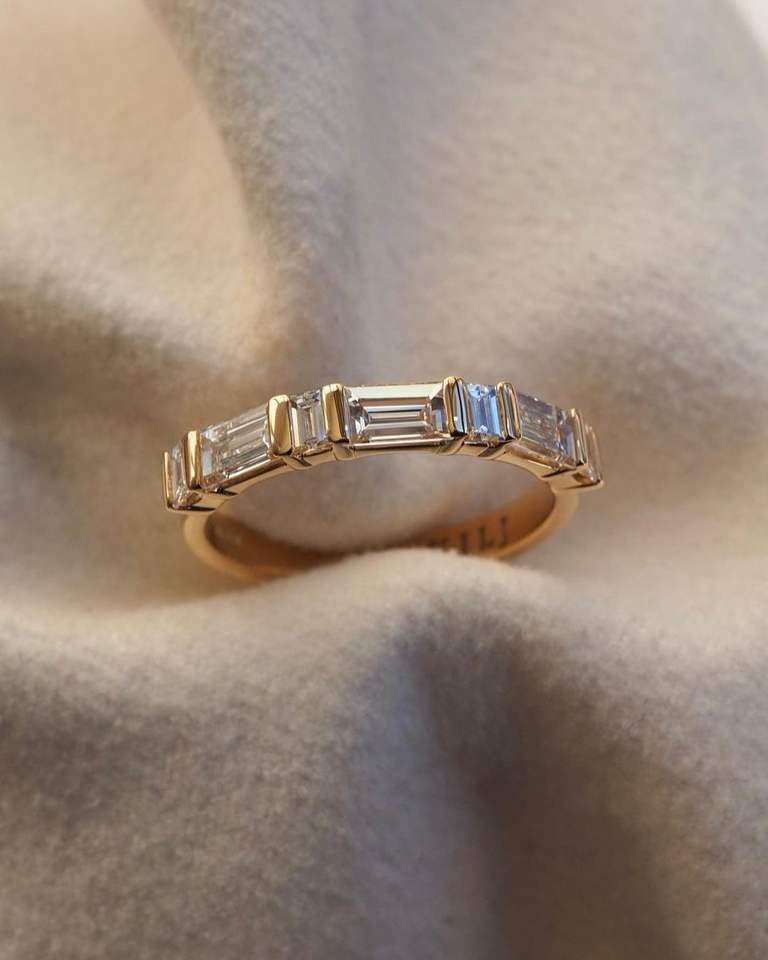 Half Eternity Baguette Moissanite Wedding Band 1.00 Ctw Baguette Cut Engagement Ring Yellow Gold Diamond Bridle Steel Jewelry