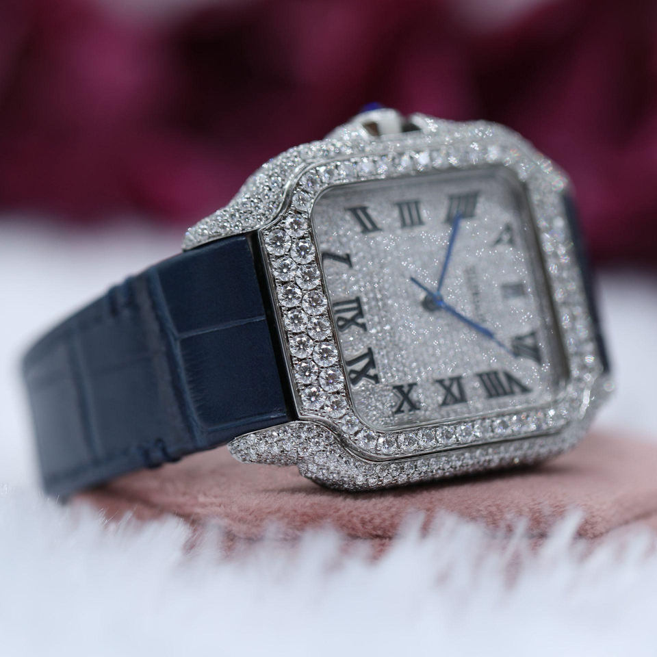 Half Iced Out Blue Band VVS Diamond Mechanical Wrist Watch/ Featuring Calender Top Quality for Hip Hop Lover Diamond Watch