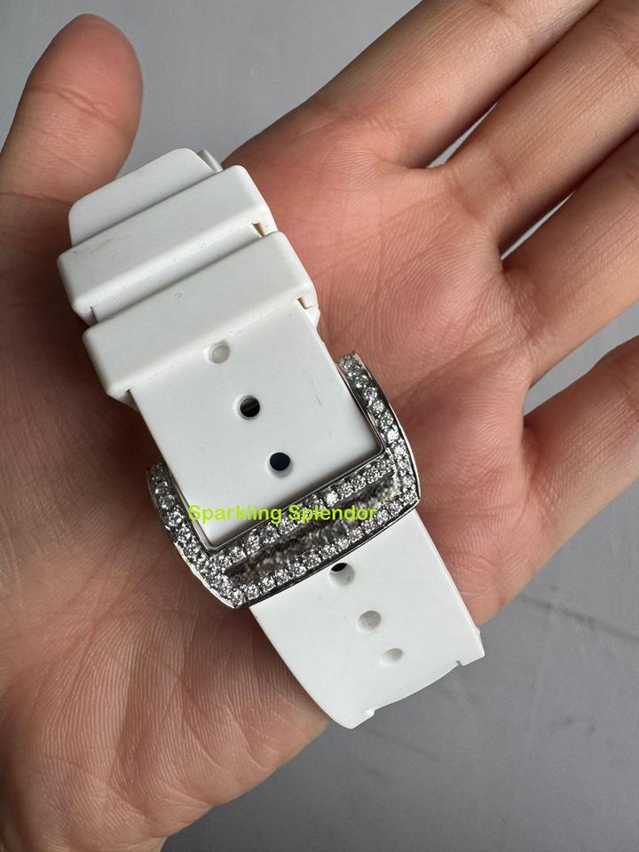 Half Iced Out Premium Quality Watch with VVS Moissanite Diamond Bezel Square Dial White Colored Leather Belt Mechanical Watch