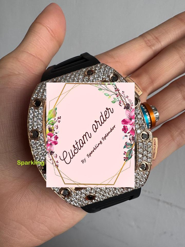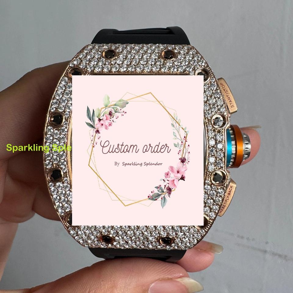 Half Iced Out Square Dial VVS Quality Moissanite Diamond Bezel with Colored Dial Premium Quality Watch Premium Leather Belt