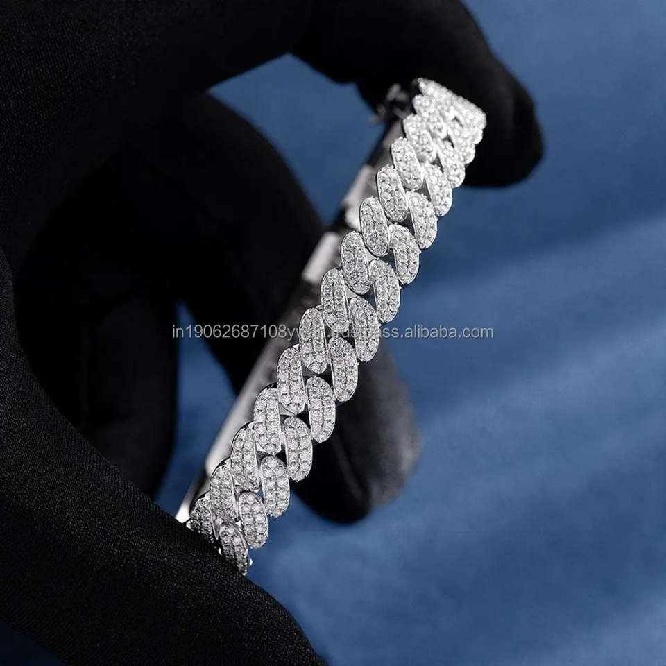 Half Moissanite Cuban Bangle Bracelet Men/Women Bracelet Moissanite Cuban Bracelet Available in 925 Sterling Silver Solid