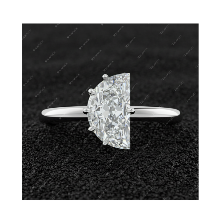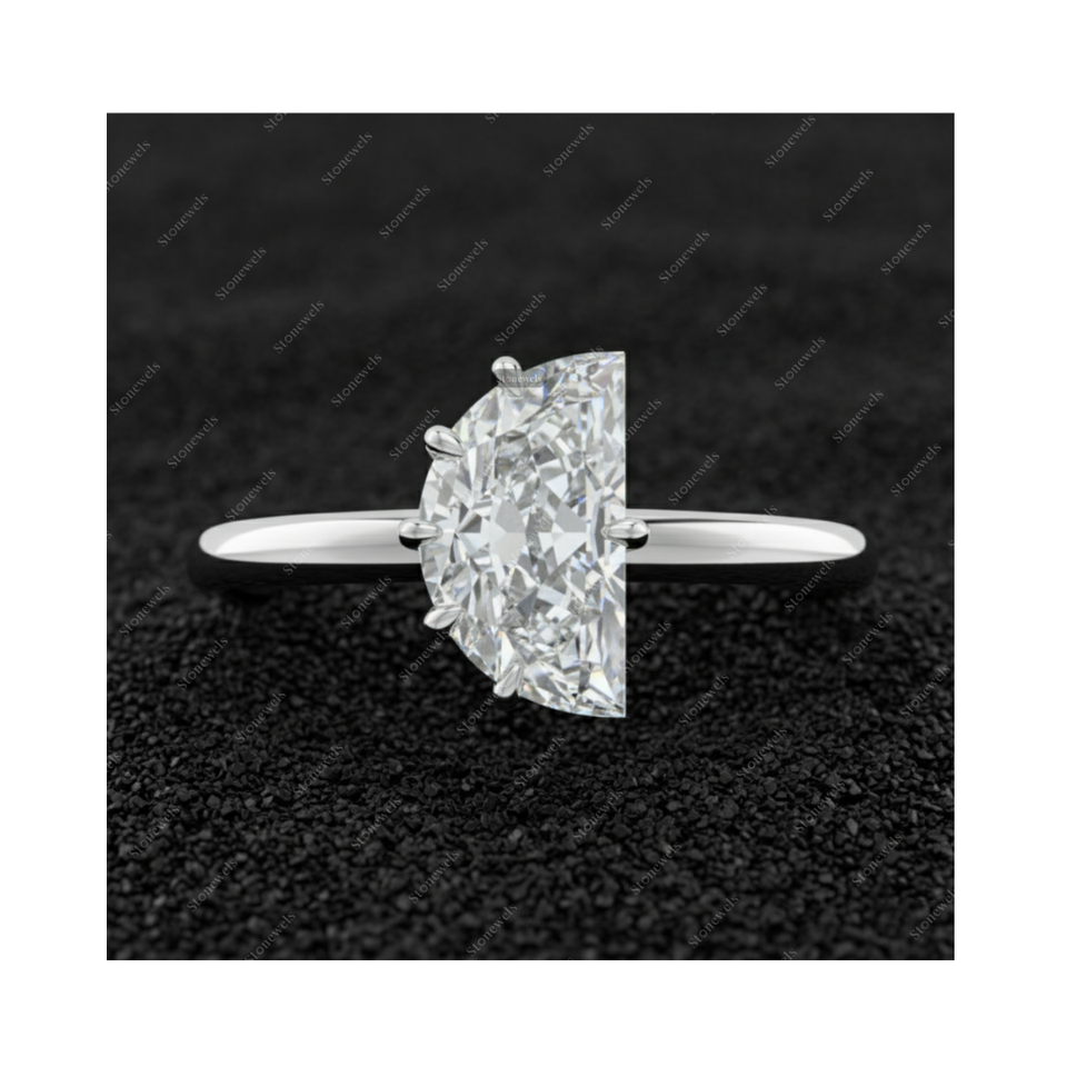 Solid Lab Grown Half Moon Shape Diamond Ring