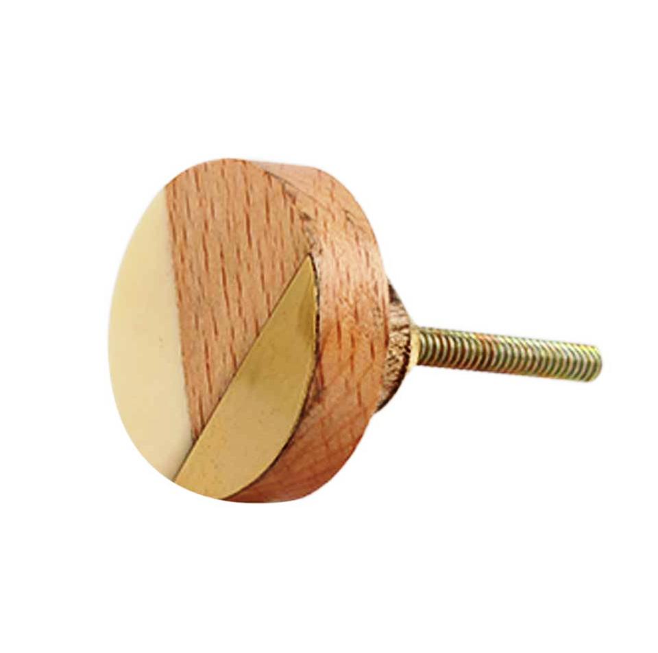 Half Moon and Round Marble & Wood Knob with Brass Strips Luxury Wood Resin Metal Door Cabinet Knob Handle Made in India