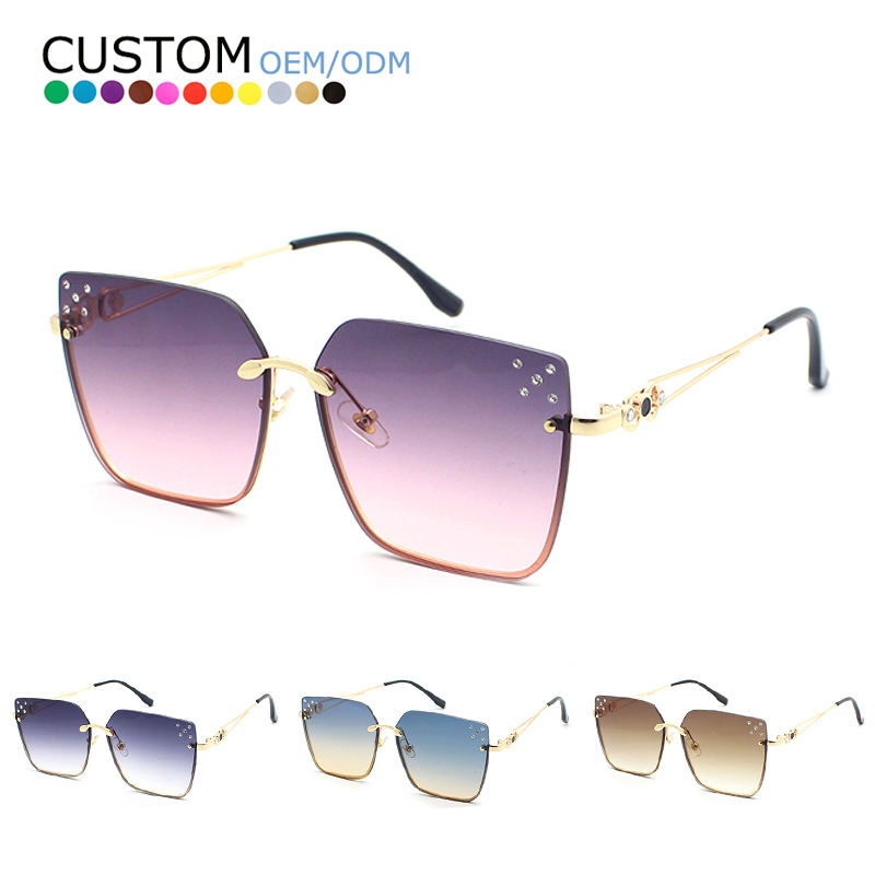 Half Rim Square Sunglasses Metal Sun Glasses Vintage UV400 Custom Shades