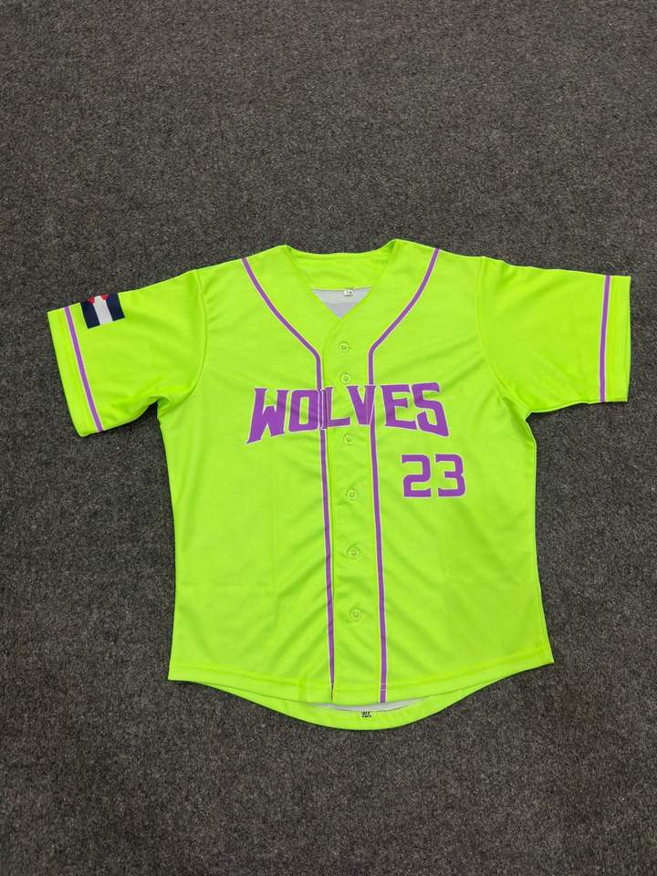 Half Sleeve Polyester Six-Button Custom Sublimation Neon Color Baseball Uniform Softball Jerseys 220 Grams Moisture-Wicking