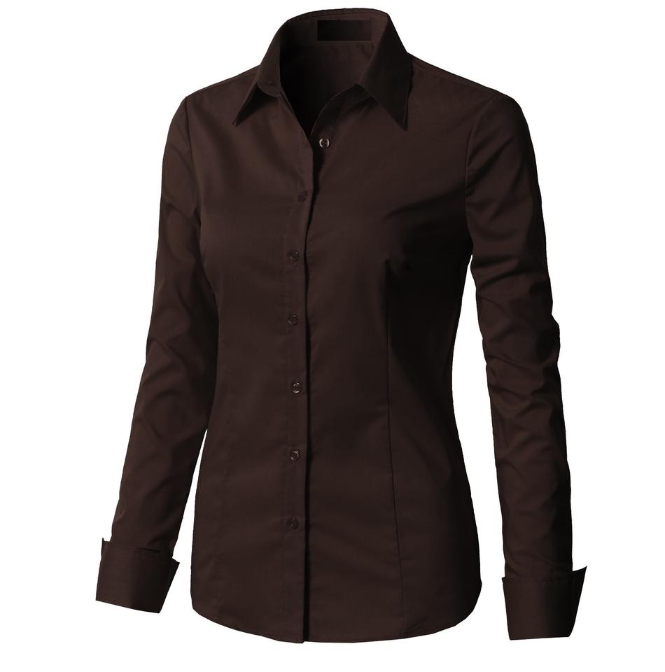 Half Sleeve Women Dress Shirts Office Business Casual Outerwear Stylish Plain Down Button Dress Shirt