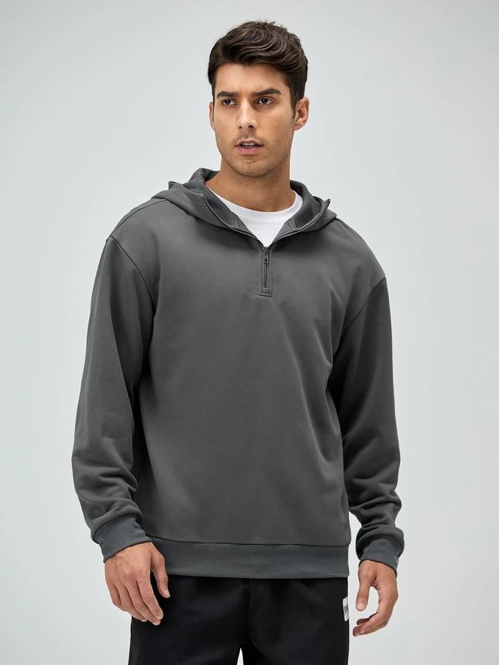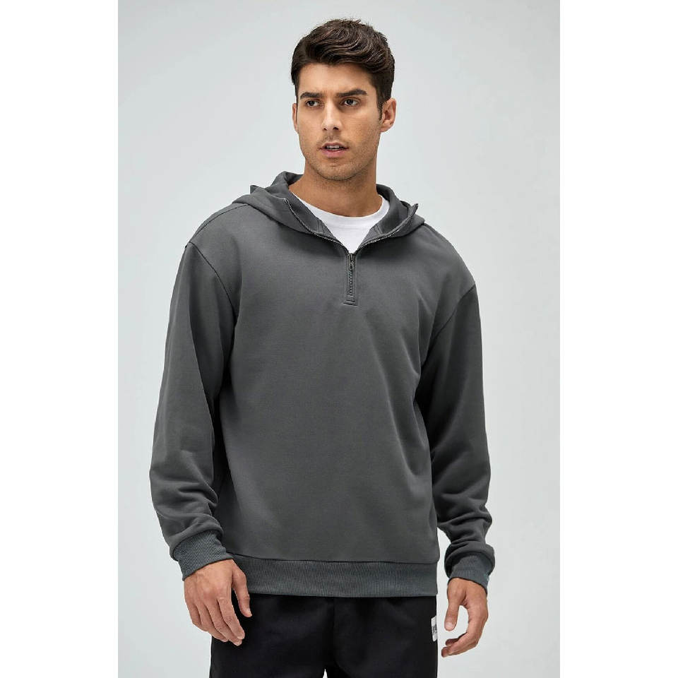 Half Zipper Long Line Kangaroo Pocket Loose Fit Pullover Cotton Blended Hoodies & Sweatshirts White Manufacturer Custom Hoodie