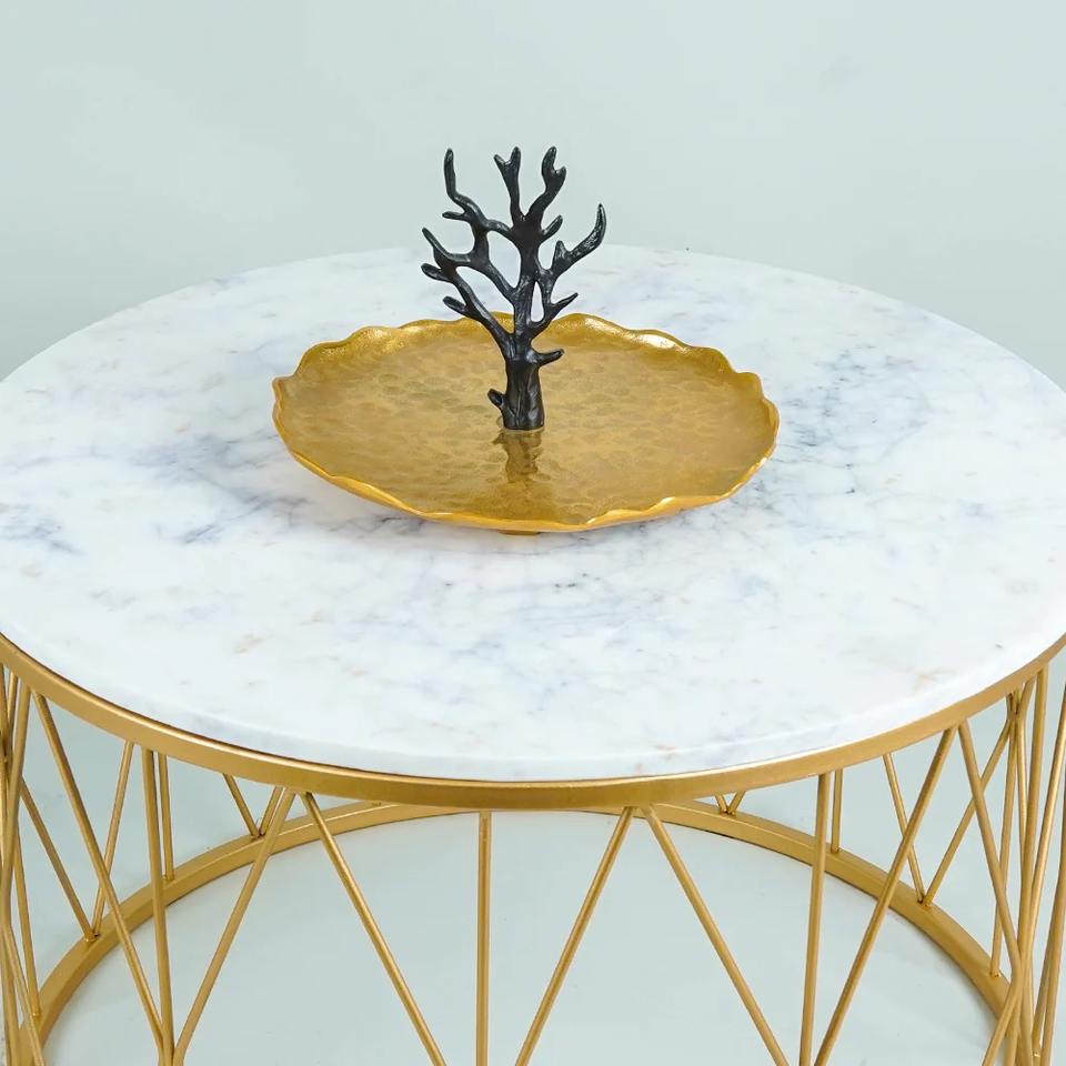 Half Circle Design Coffee Table Living Room Decoration Table Can Put Vase High End Luxury Marble Gold Metal