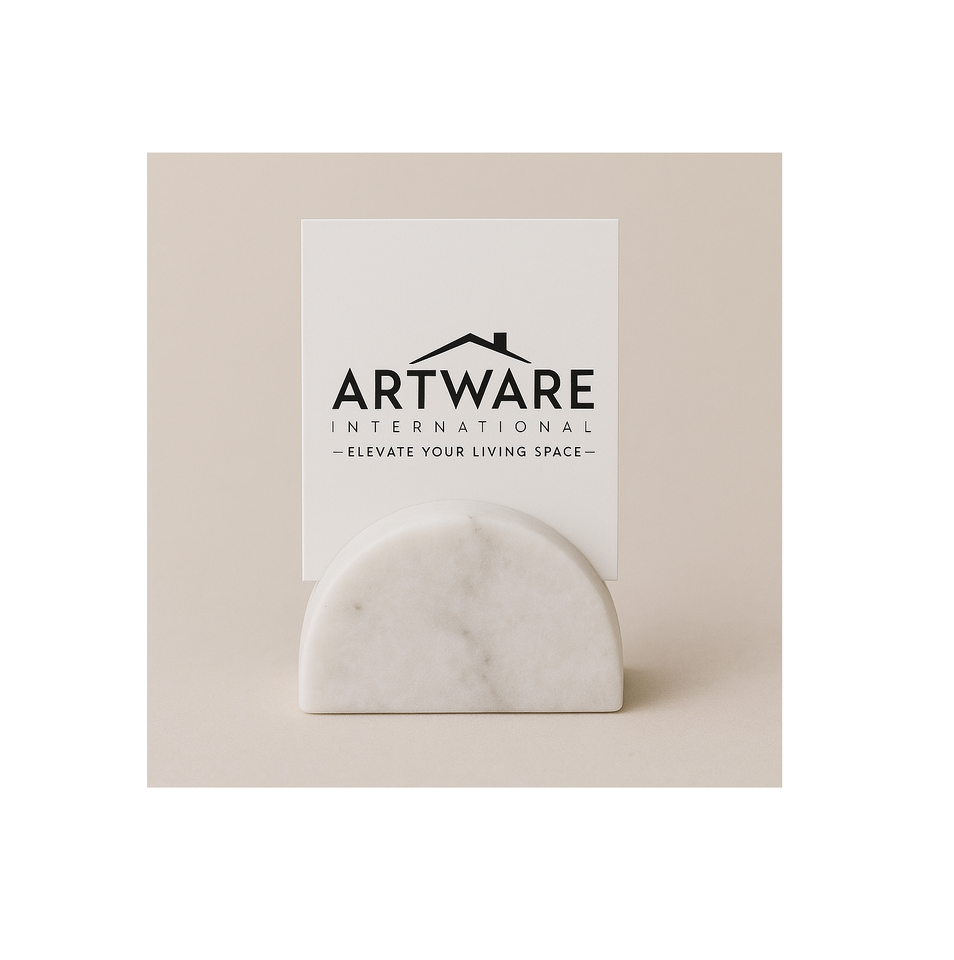 Half-moon white marble card holder unique semi-circle display for business cards modern minimalist desk accessory for reception
