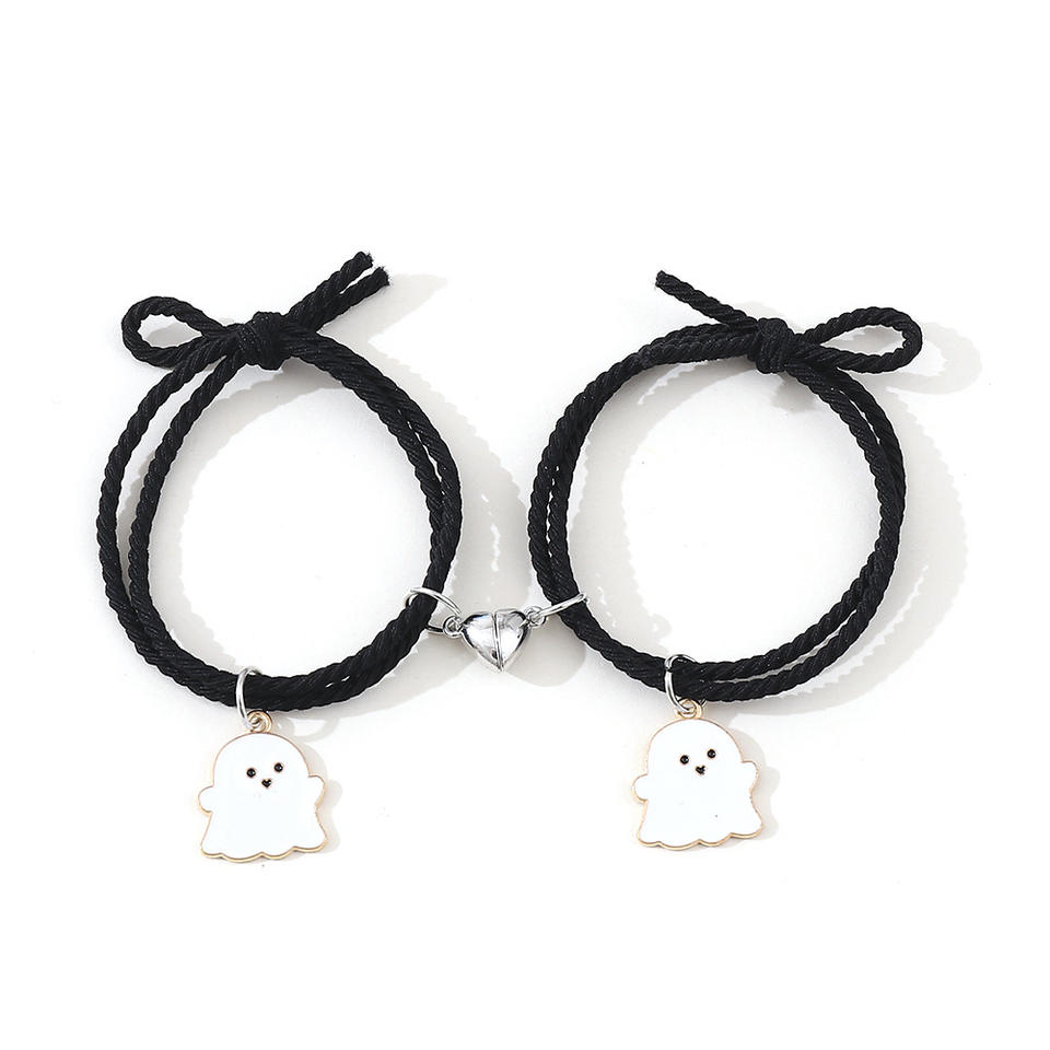 Halloween 2Pcs/Set Braided Bracelet for Lovers Long Distance Heart Magnet Couple Bracelets Friendship Fashion Jewelry Gift
