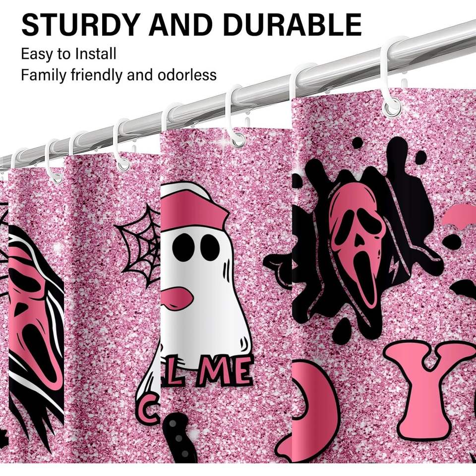 Halloween 3D Scary Face Shower Curtain with Hooks Cute and Funny Theme Fabric Bath Curtain for Home Decor in Stock