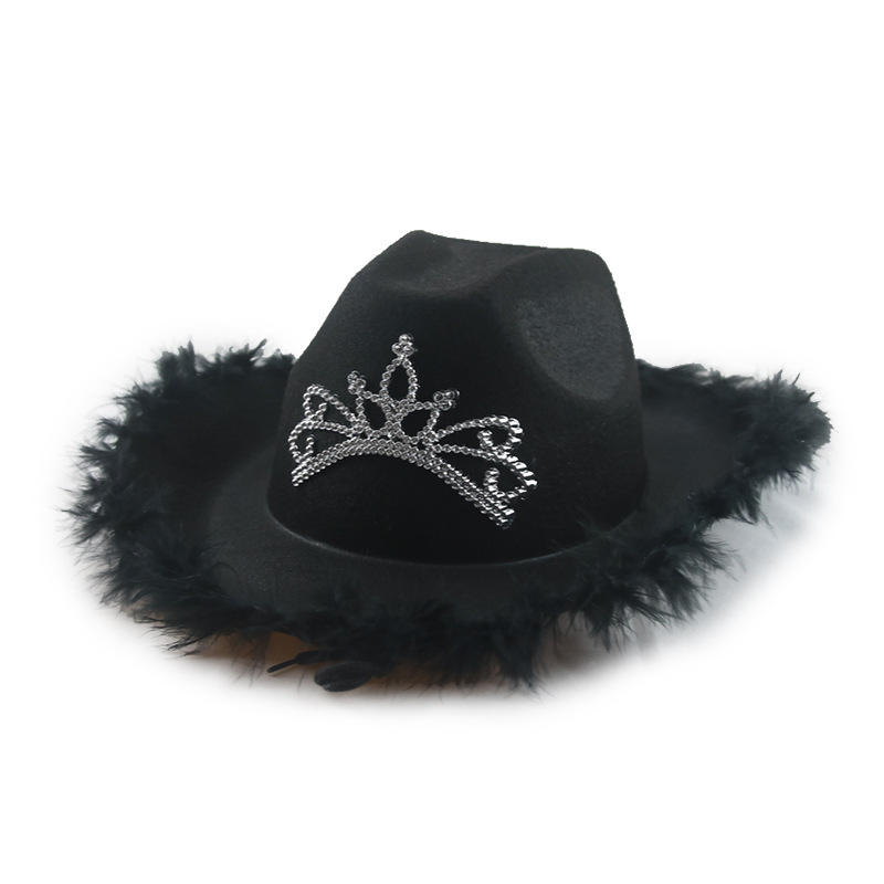 Halloween Christmas Party Cosplay Costume Hats Rough Brim Felt Western Cowboy Style Flashing Sequins Pink Cowgirl Hat
