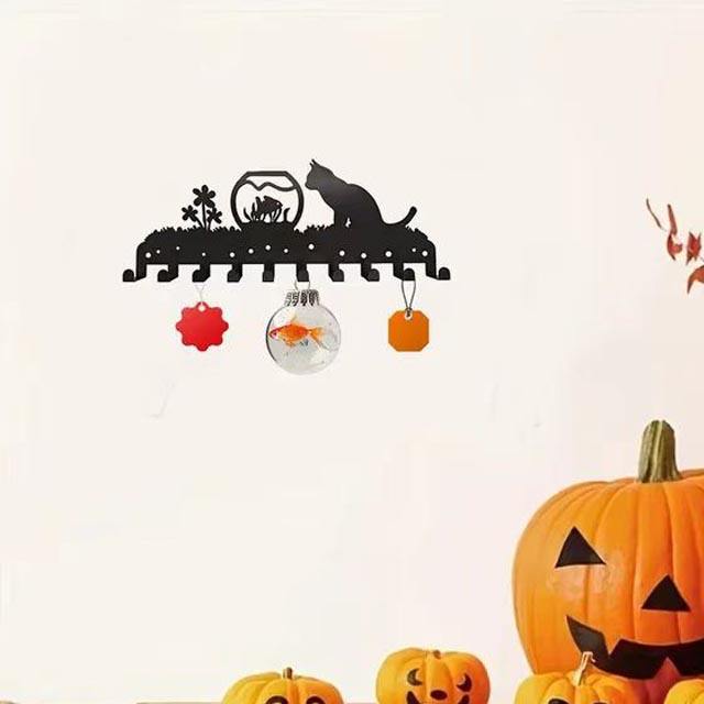 Halloween Decorative Custom Wall Hanging Key Hanger Cartoon Black Cat Wall Mount Wrought Iron Entryway And Hallway Hook Racks