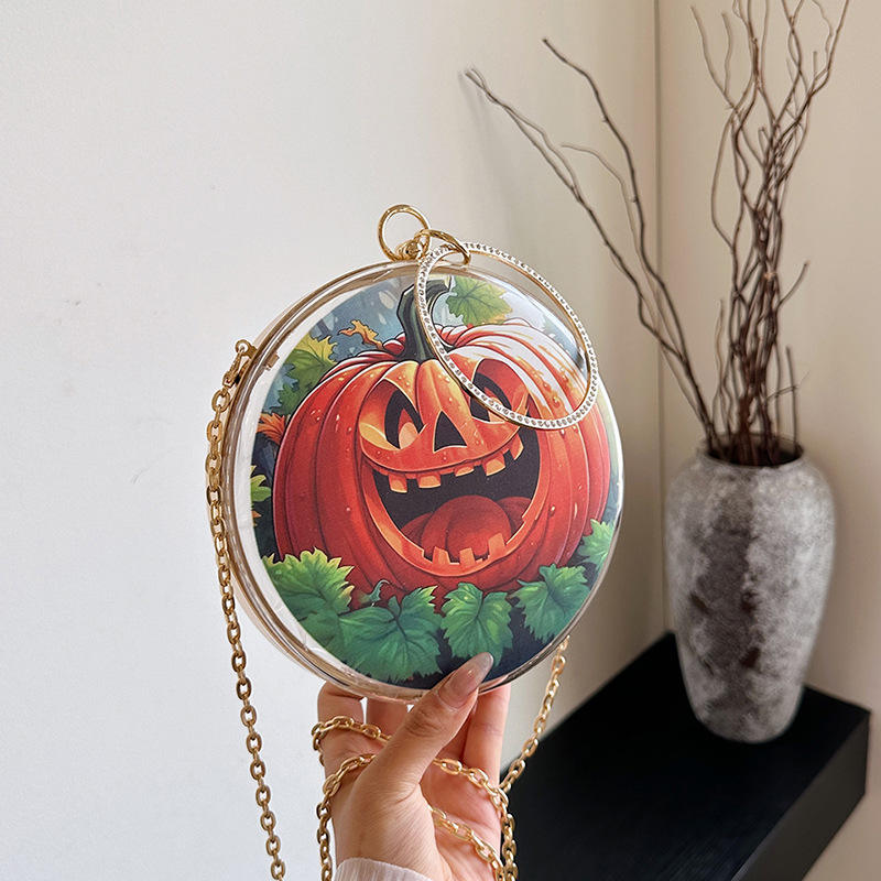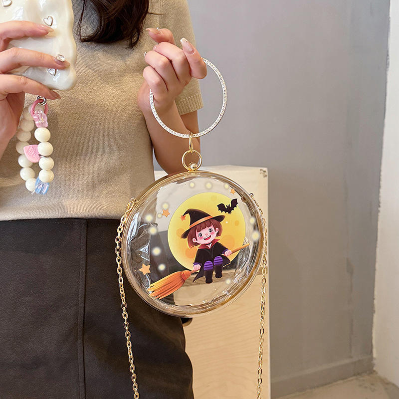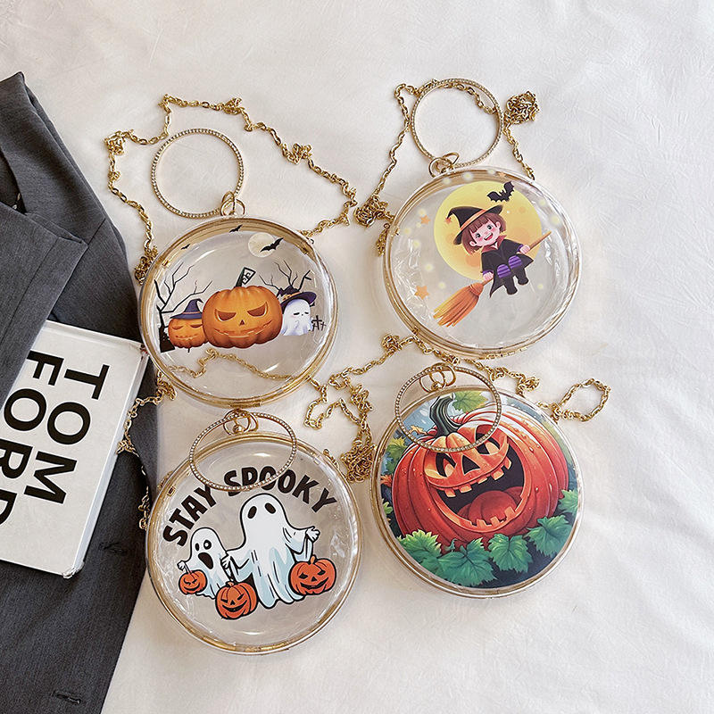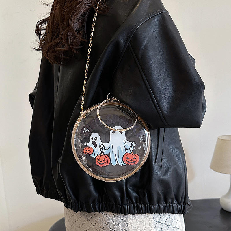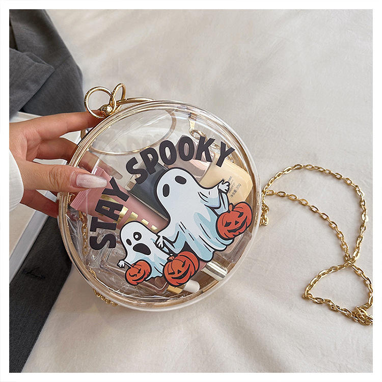 Halloween Funny Fashion Cartoon Cute Box Bag Ghost Pumpkin Transparent Clear Small Round Bag With Ring Handle Lift