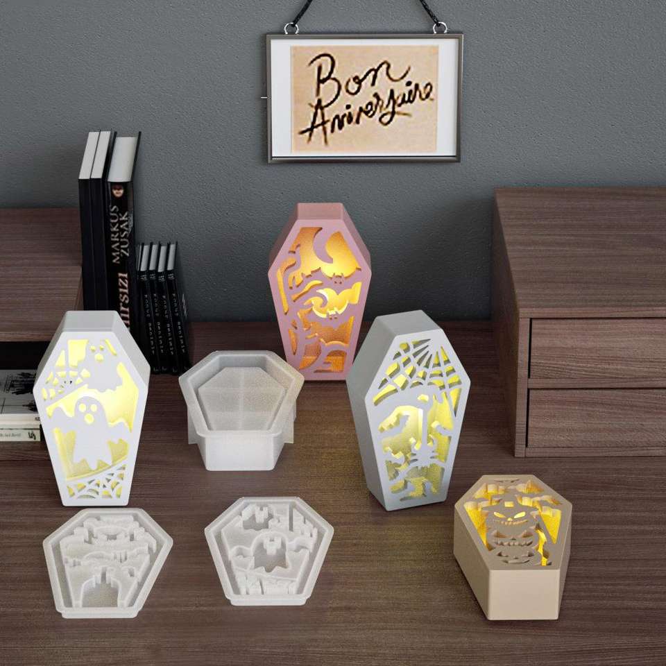 Halloween Ghost Demon Spider Web Coffin Egg Light Silhouette Box Resin Silicone Mold