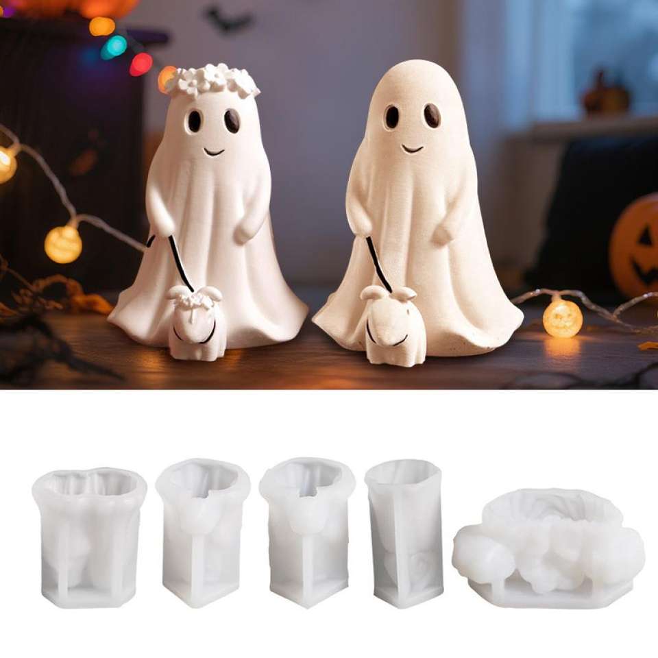 Halloween Ghost Groom Bride Candle Ghost Doll Skull Wizard Candlestick Gypsum Resin Candle Silicone Mold