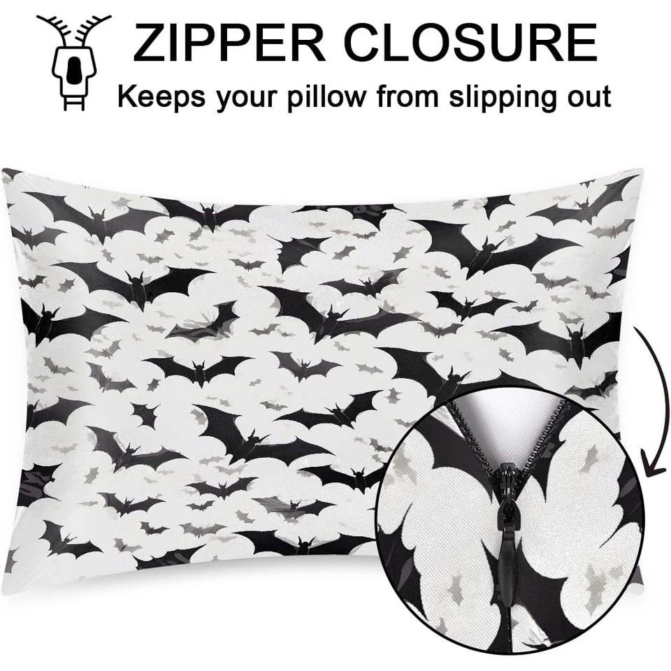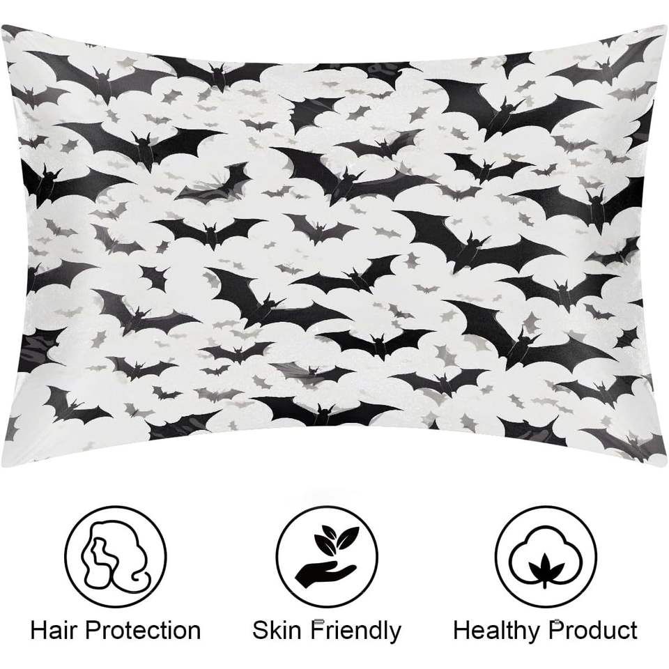 Halloween Gothic Bat Satin Pillowcase 20x30 Inches Queen Size Soft Floral Pattern for Hair Skin Home Use Similar Silk Pillowcase