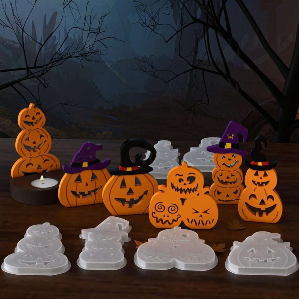 Halloween Hat Pumpkin Demon Pumpkin Three Pumpkin Candlestick Pendant Silicone Mold