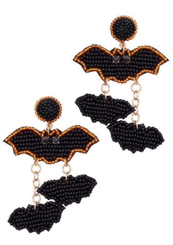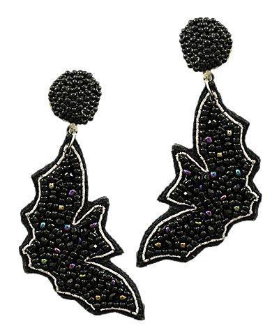 Halloween Huggie Earrings Handmade Clip-on Bat Seed Beaded Embroidery Fall Beaded Sequin Design India Handmade Jewelry