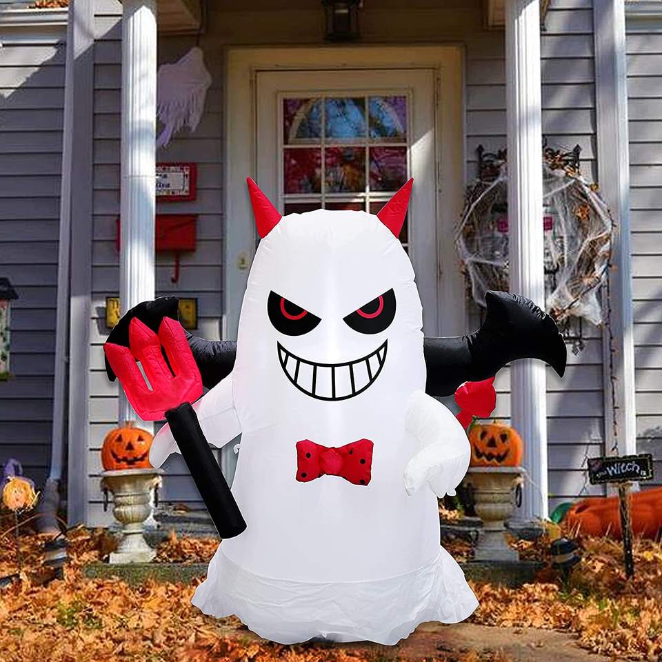 Halloween Inflatable White Devil Ghost with Build-in LED Lights for Indoor Outdoor Party Yard Garden Lawn Decoration