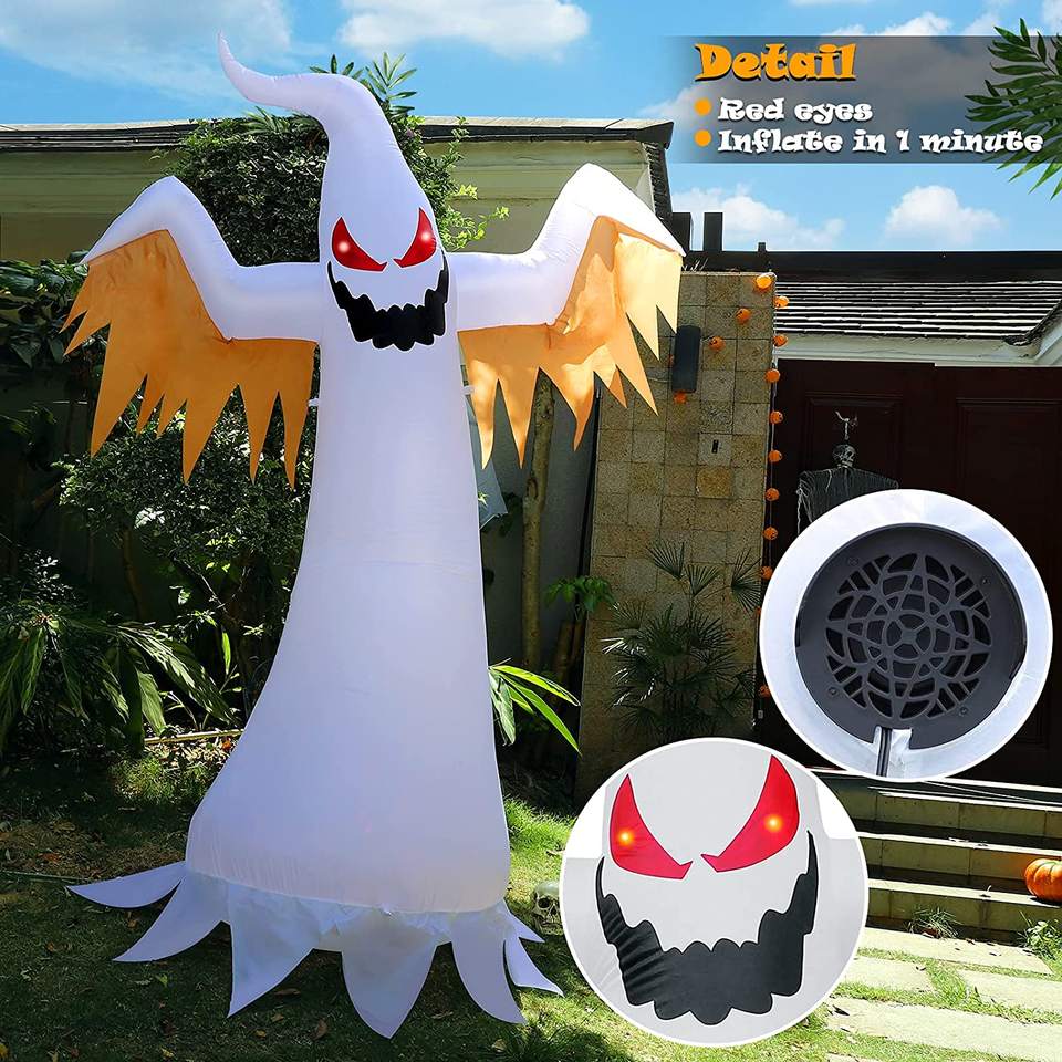 Halloween Inflatables White Ghost with LED Lights & Blinking Red Eyes for Outdoor Festival Party Decorations