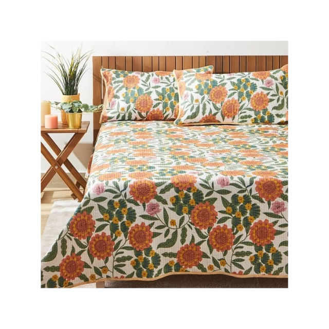Halloween Moon 300TC Waffle Pattern GOTS Organic Midweight Bedspread For Wedding Organic Double Bed Premium Indian Bedroom Decor