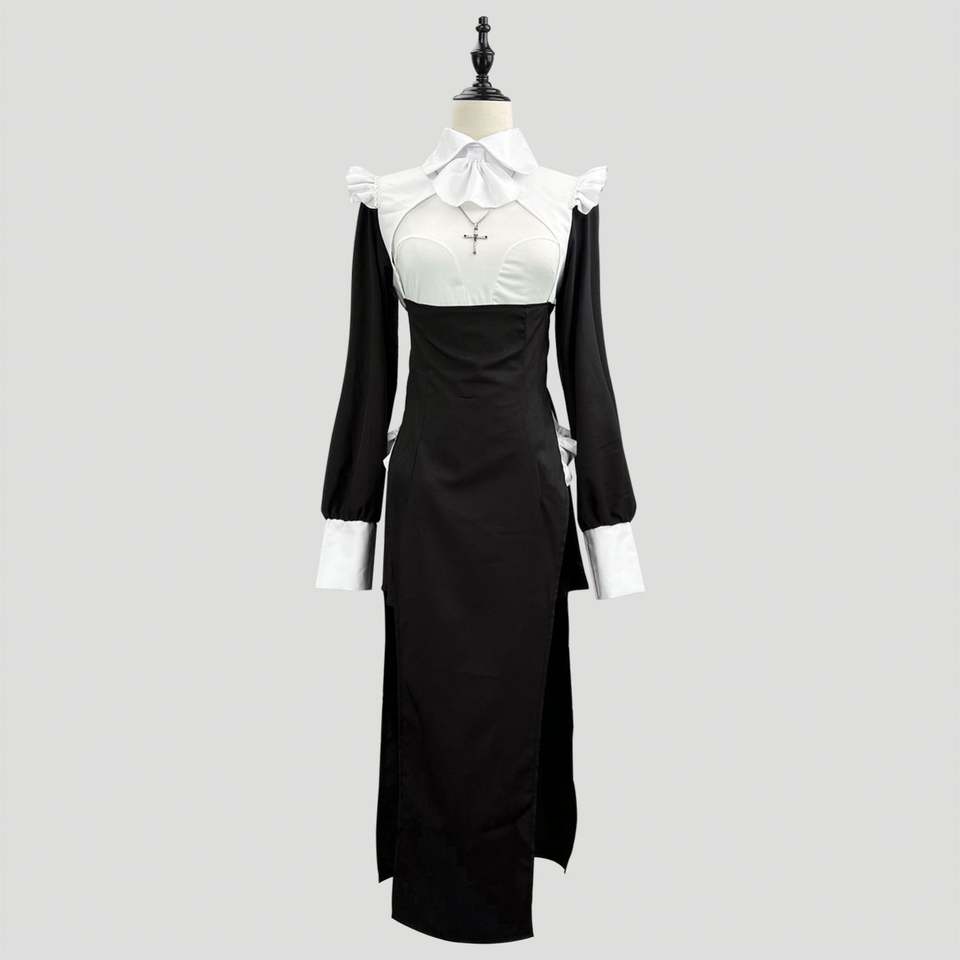 Halloween Plus Size Sexy Nun Costume Anime Character Drag Nurse and Maid Gown for Cosplay Parties