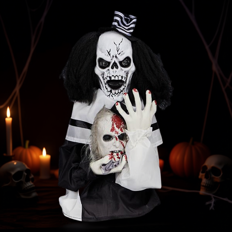 Halloween Scary Clown Decoration 1.8ft Sound Activated Indoor Plastic Prop For Haunted House Party Decor Adult Use