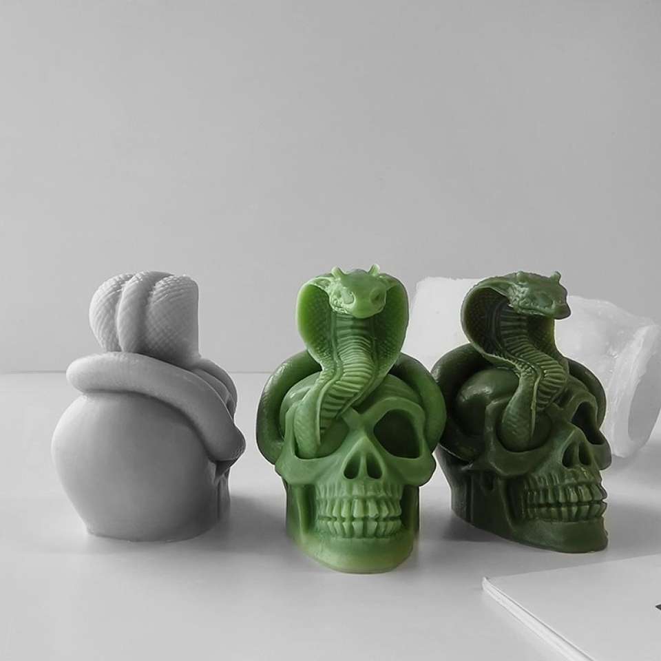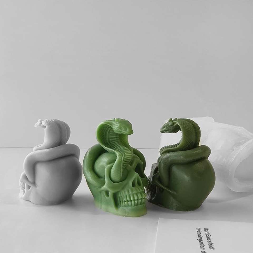 Halloween Skull Candle Snake Skull Home Gypsum Resin Candle Silicone Mold