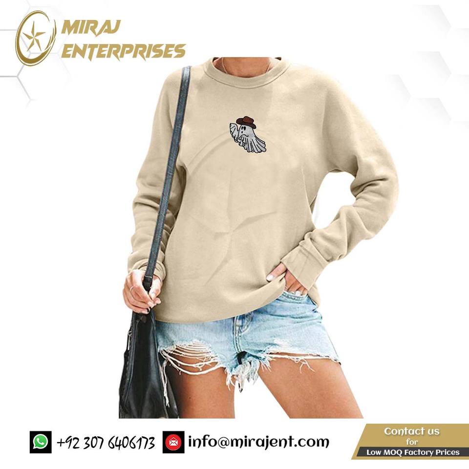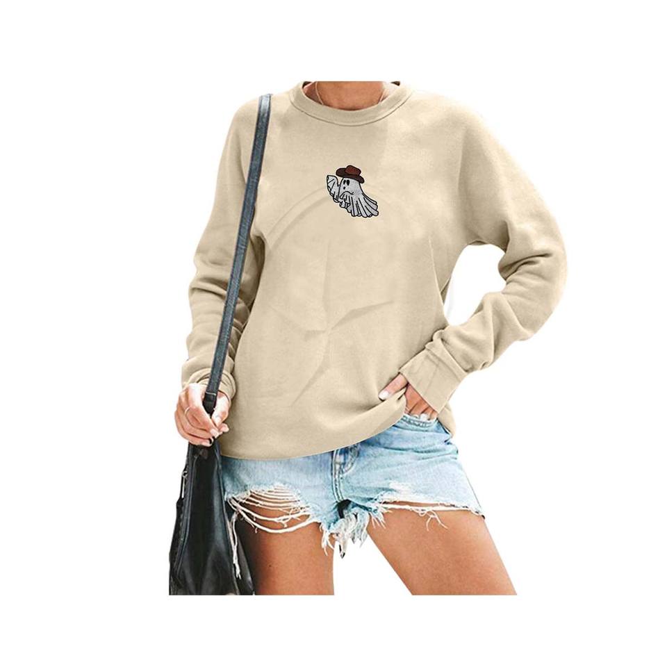 Halloween Sweatshirt for Women Western Ghost Cotton Korean Embroidered Crewneck Long Sleeve Shirt Spooky Season Pullover Top