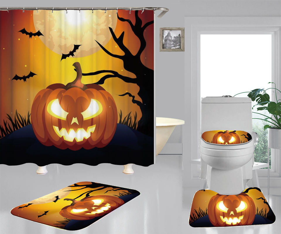 Halloween Waterproof Pumpkin Printing Plain Bathroom Washroom 4 Pcs Shower Curtain With Rugs