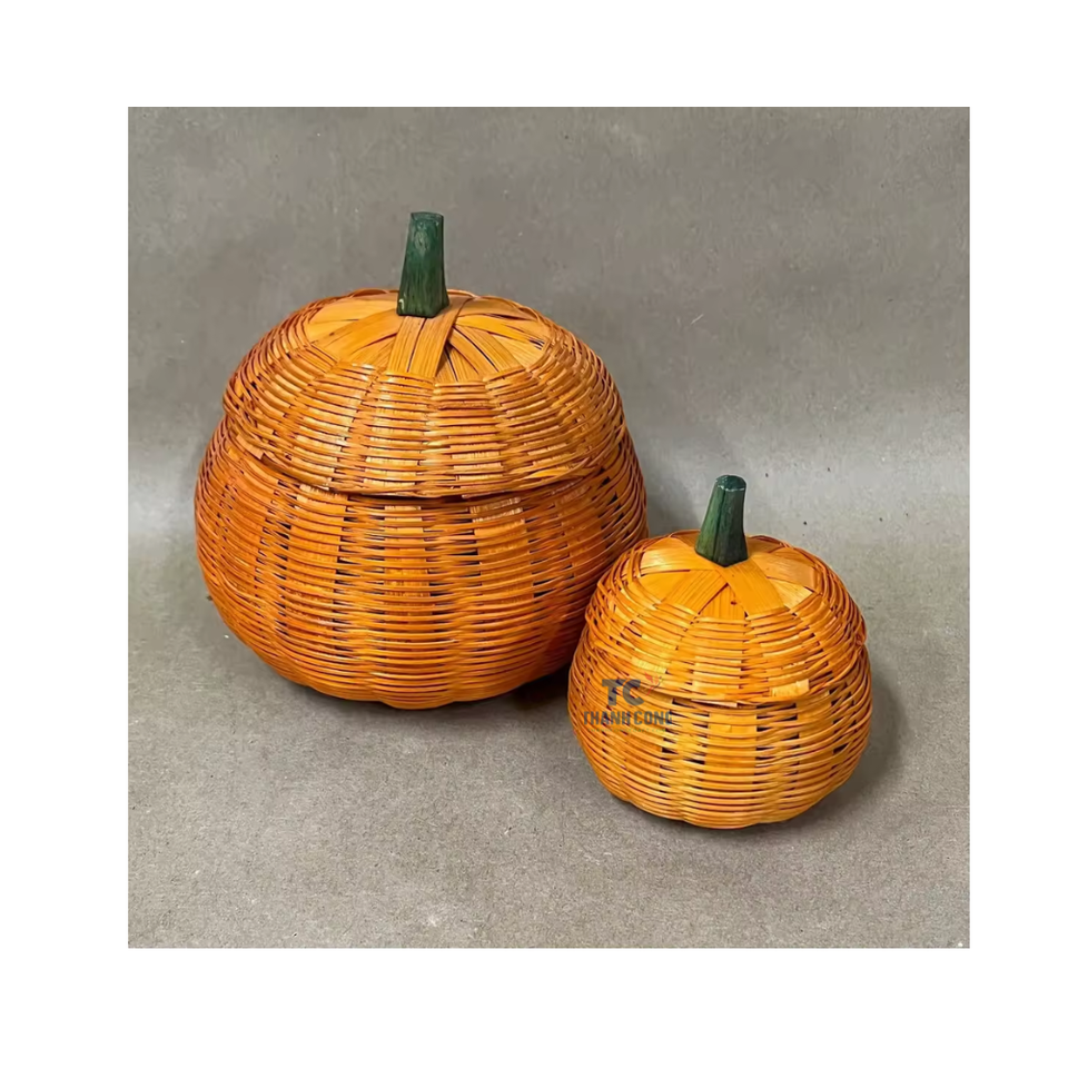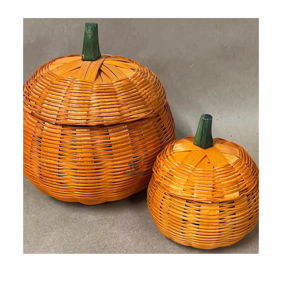 Halloween-inspired Bamboo Woven Pumpkins Charming Pumpkins With Green Wooden Stems for Thanksgiving