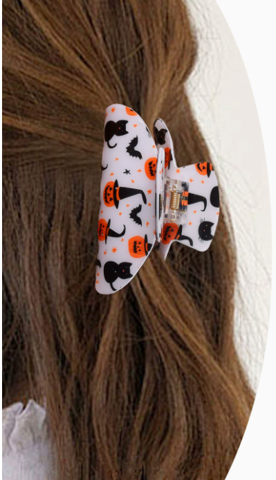 Halloween themed pumpkin skeleton spider hair clip shark clip hair accessory