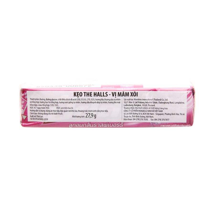 Product name:Halls Raspberry Flavored Center Filled Candy Stick 27.9g
