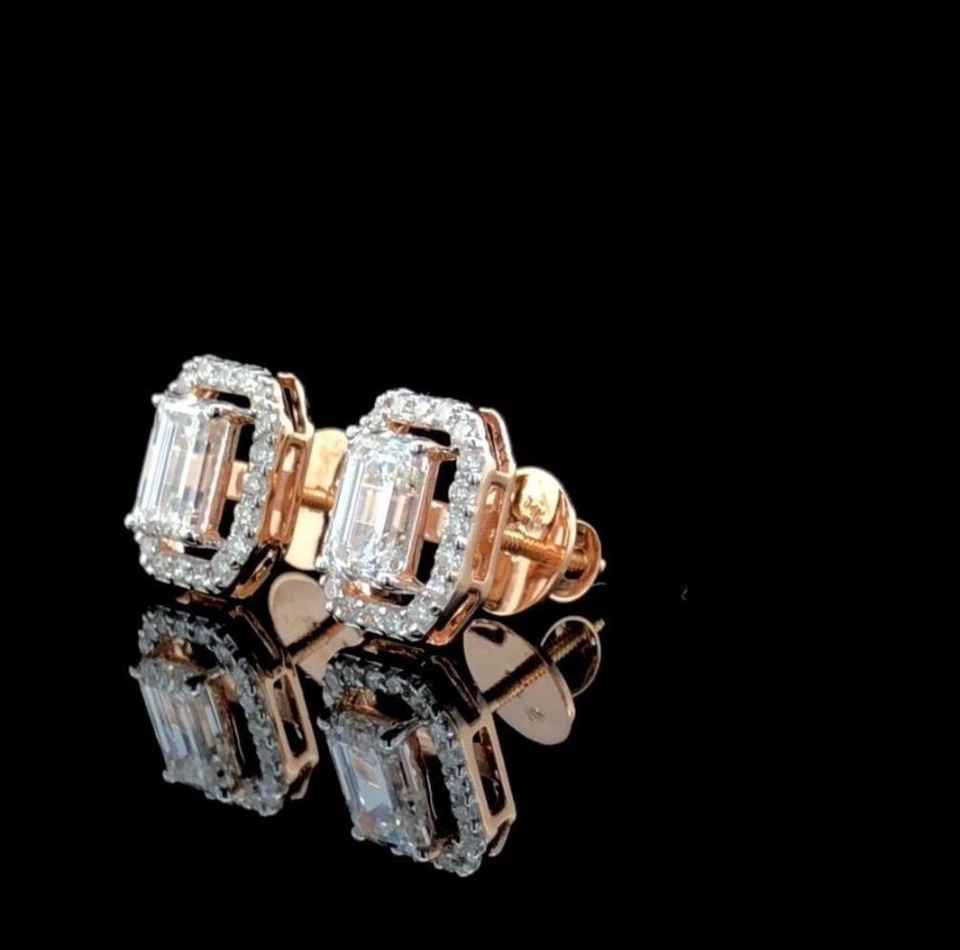 Halo 1.01CT Emerald Cut Lab Grown Diamond Stud Earrings 14K Solid Gold Jewelry Engagement Party Bridal Gift for Girlfriend