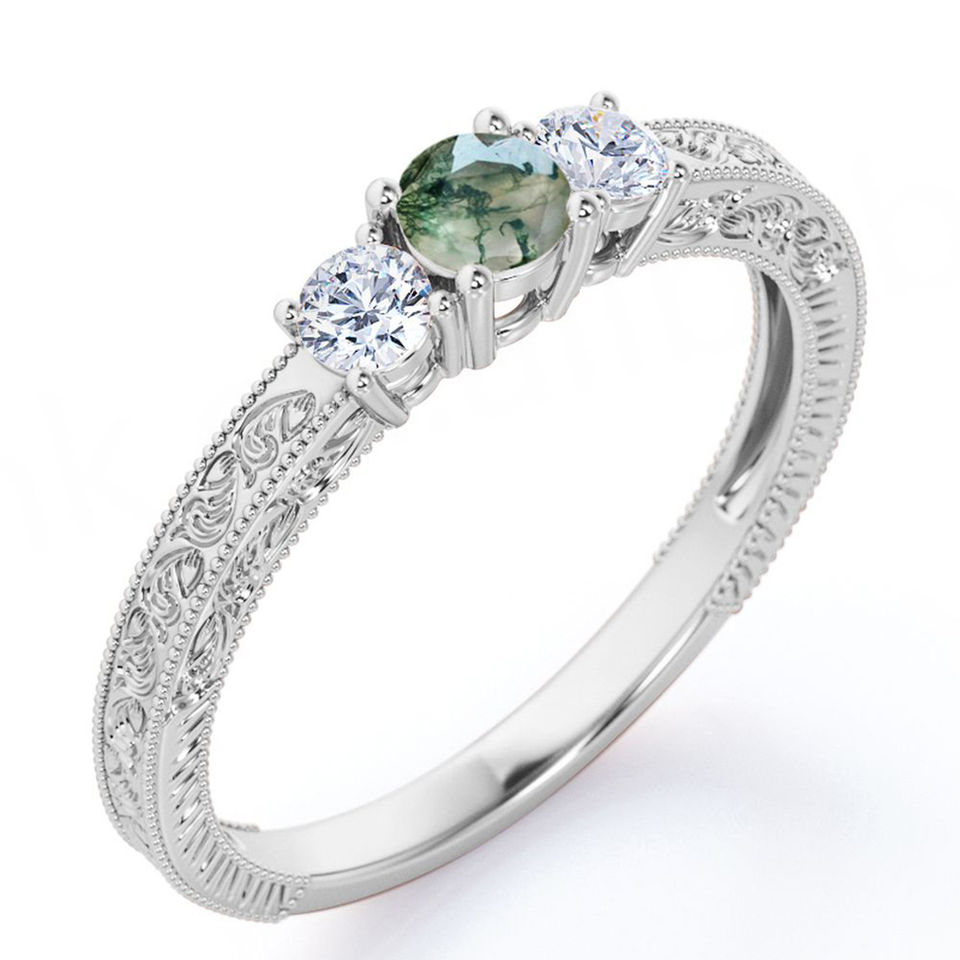 Oval Cut Moss Agate Ring:Engagement Women Ring