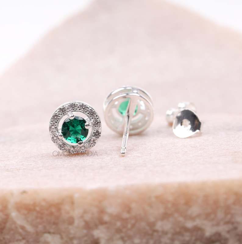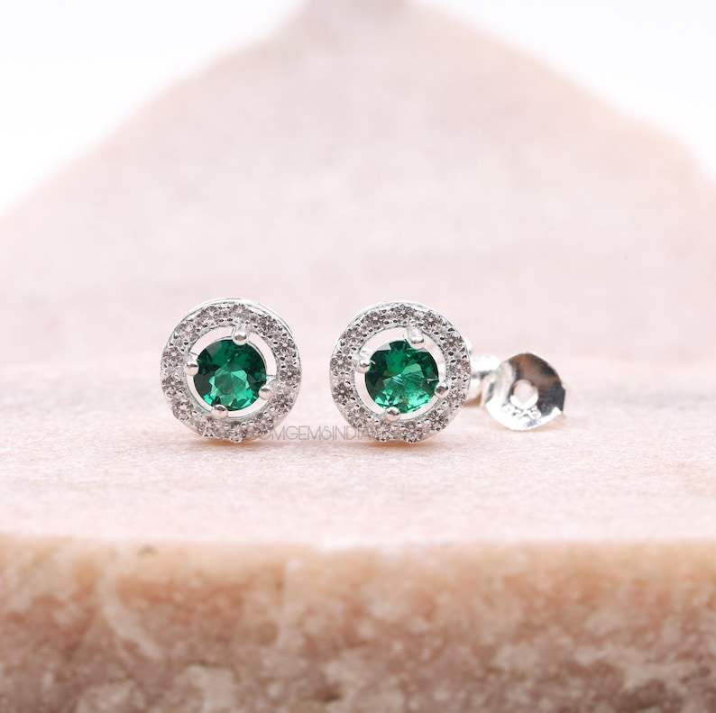 Halo Bohemian Stud Earrings | Halo Diamond Earrings for Women | Minimalist Dainty Studs Pair | Sterling Silver Earrings