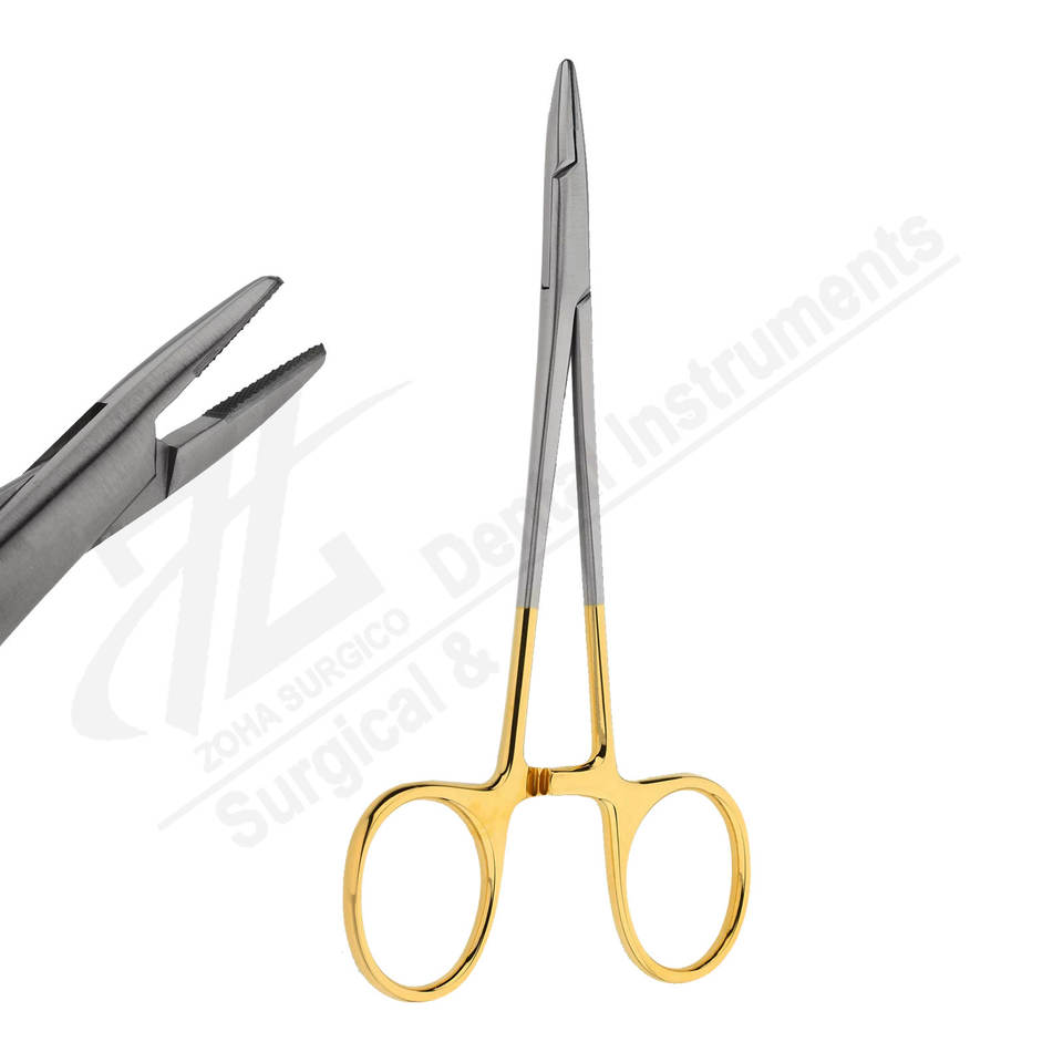 Halsey Needle Holder Straight jaws w/TC inserts Ring Handle Ratchet Stainless Steel 5'' 13cm Needle Holder Manufacturer Pakistan