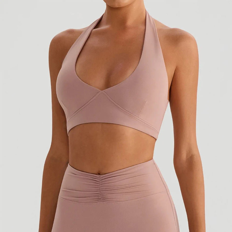 Halter Neckline Compression Bra For Women Yoga Gym Sportswear Activewear Pushup Style Padded Training Vest Seamless Fitness Top
