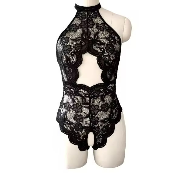 Halter One Piece Lace Open Crotch Sexy Bodysuit Perspective Erotic Appeal Ladies Lingerie Sex Lingerie Lace Lingerie Sets