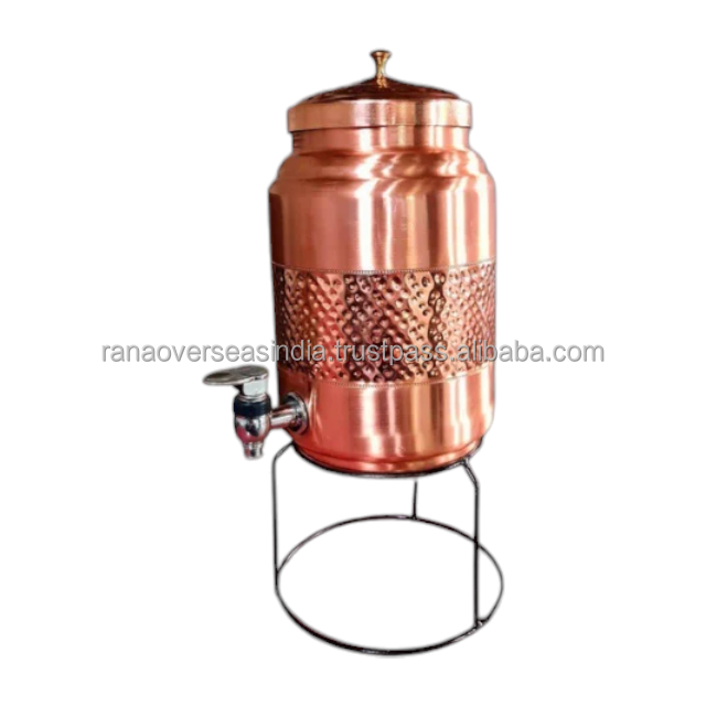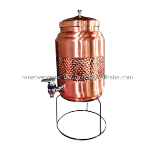 Hammer Design Pure Copper Water Dispenser Cylindrical Storage Tank with Iron Stand for Home & Hotel Outdoor Use Cold Type