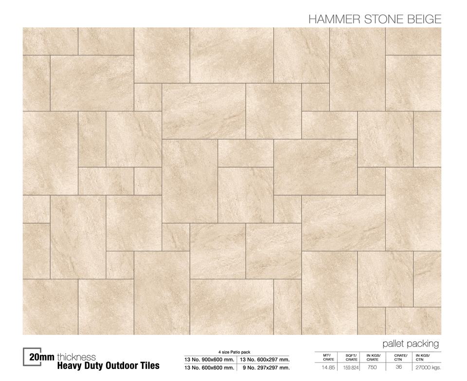 Hammer Stone Beige 600x600mm R11 Outdoor Porcelain Tiles 20mm Full Body for Garage and Pool Flooring Ceramics