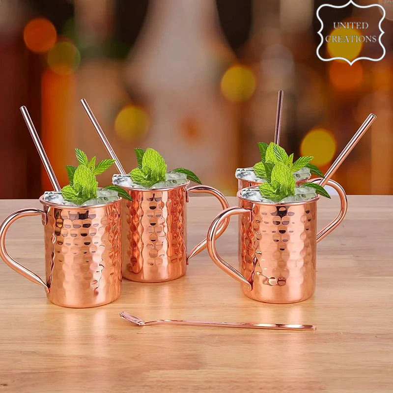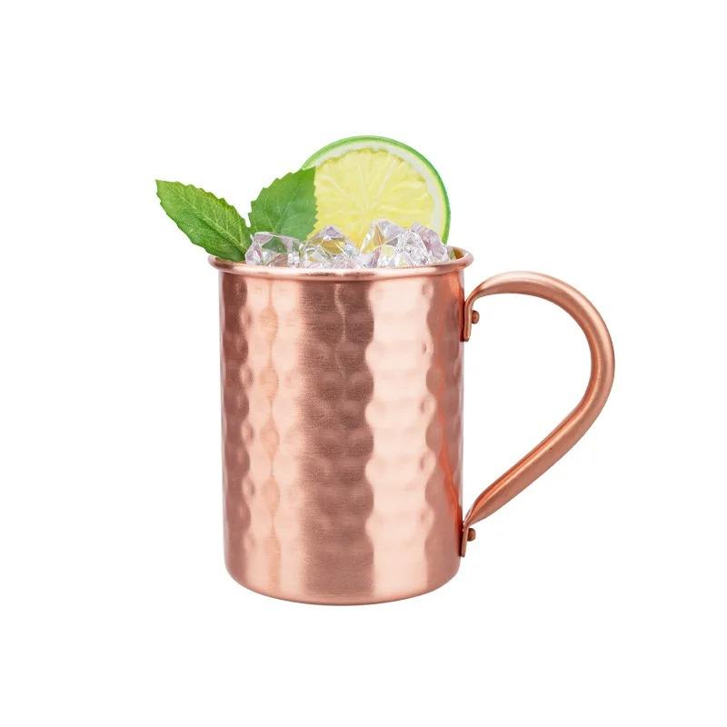 Hammered Copper Moscow Mule Beer Cup with Gold Plated Handle Stainless Steel Tumbler for Cocktail & Coffee Copper Mug