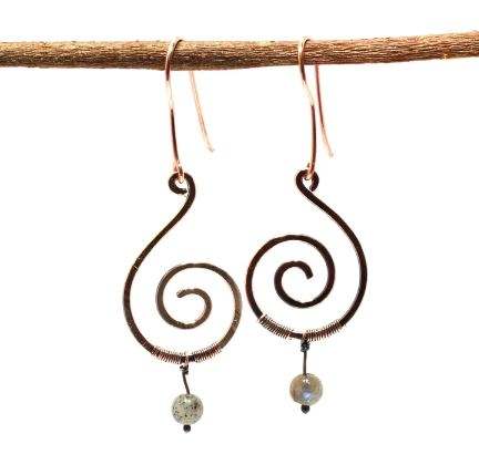 Hammered Copper Wire Hoop Earrings With Pearl and Diamond Trendy Bead Jewelry for Weddings and Parties