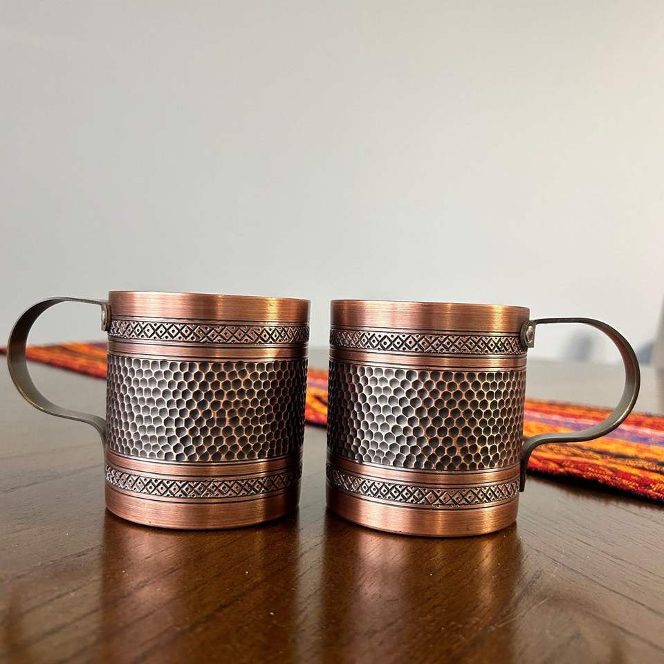 Bear Mug Hammered Copper Brushed Brass Handle Honeycomb Pattern Dimpled Texture Rose Gold Antique Copper Persian Vintage