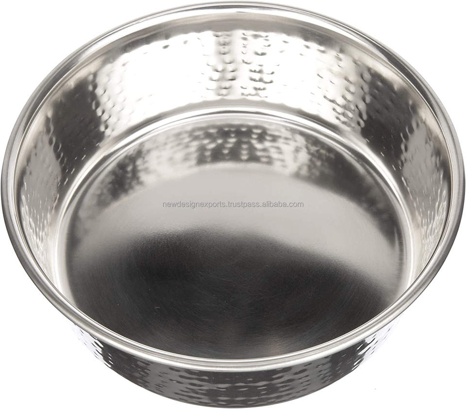 Hammered Decorative Designer Bowls - Luxury Style Premium Dog and Cat Dishes (Large, Stainless)