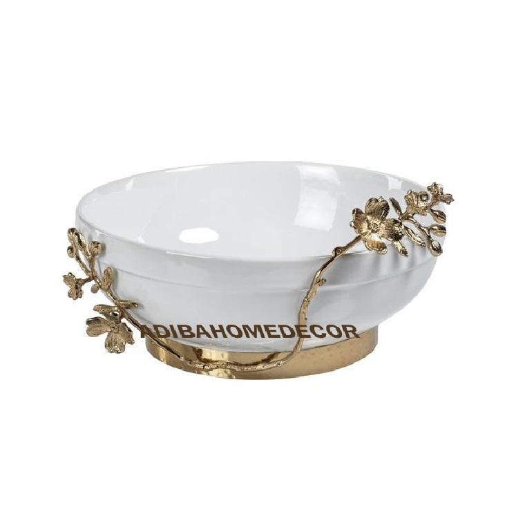 Hammered Decorative Steel Mixing Decorative Gold Leaf Handle Metal Bowl for Decoration