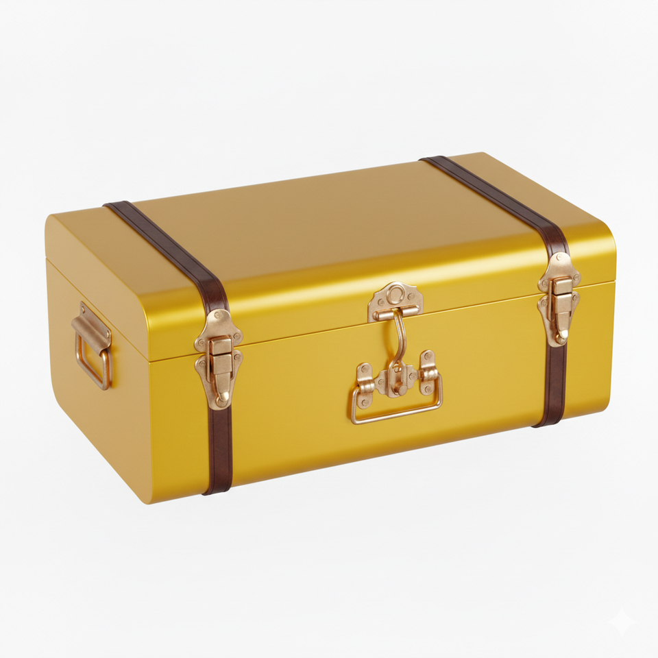 Hammered Design Black Coated Metal Trunk Storage Box For Cloths & Jewelry Use Lightweight Strong Trunk Box For Home With Lock