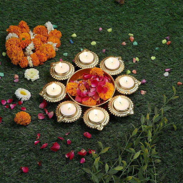 Hammered Design Floating Diya in Urli Bowl Add Serenity and Beauty to Your Home Urli Bowl with Diya